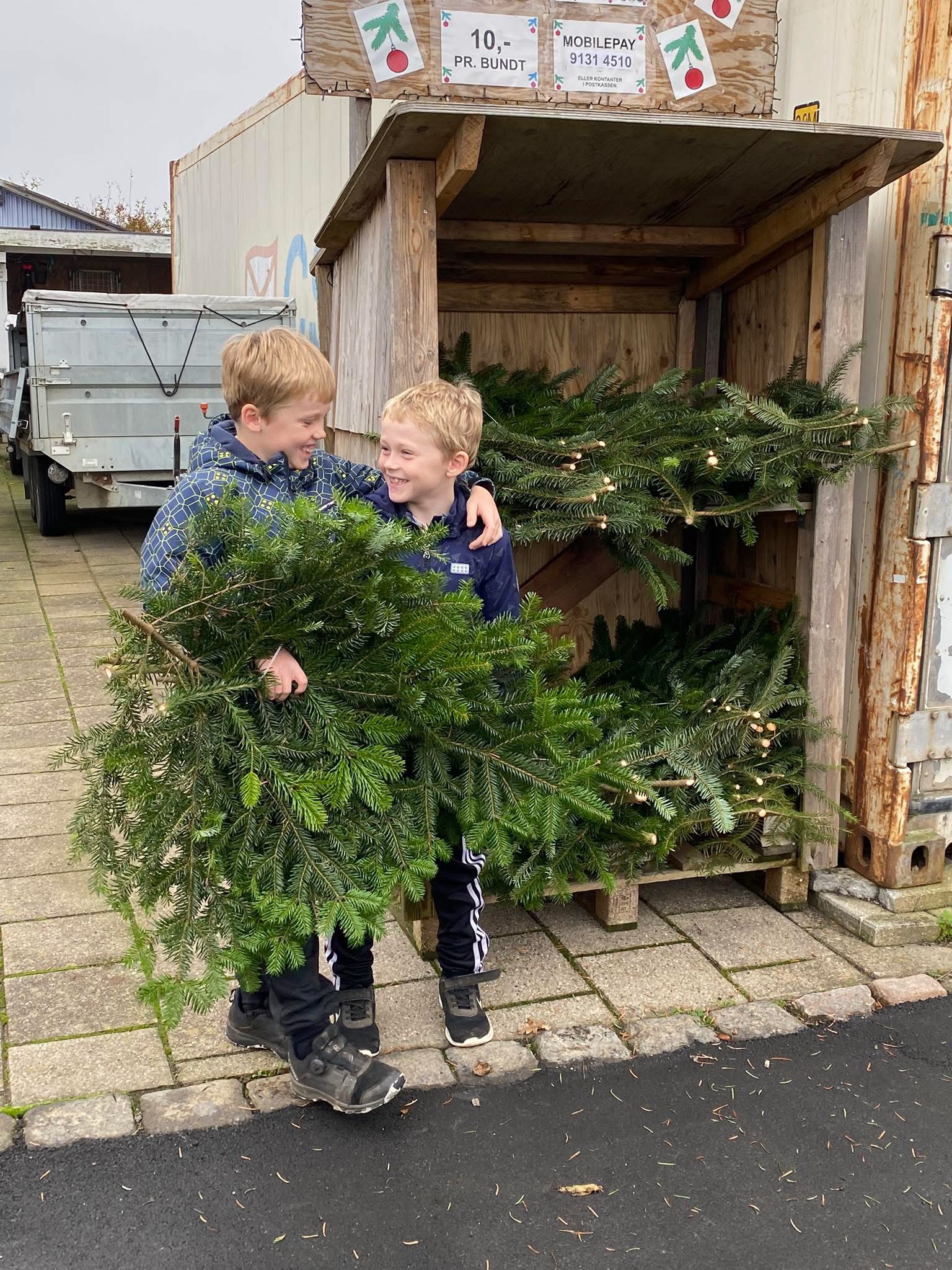 Mangler du gran🌲? Tvillingerne Daniel og Alexander har hentet flere juletræer fra deres morfars juletræsplantage og sælger store bundter gran for 10 kr. pr. bundt.